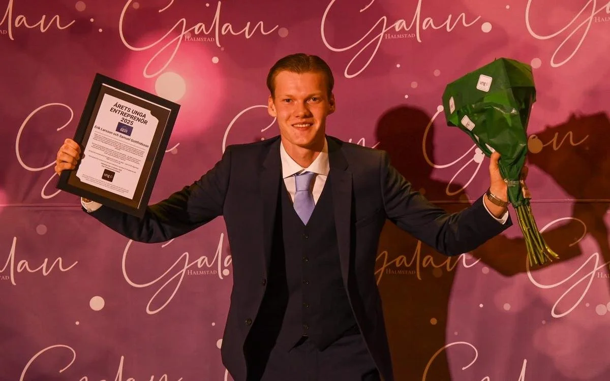 Under näringslivsgalan 2025 i Halmstad som hölls på Hotell Tylösand i Halmstad kammade våra grundare Erik Larsson och Samuel Gottfridsson hem priset “Årets Unga Entreprenör”. Priset delades förra året ut till grundarna av festivalerna “Sandstock” och “Hearts Festival”.