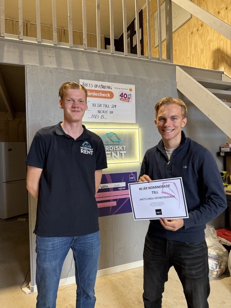 Våra grundare, Erik Larsson och Samuel Gottfridsson, hade nyligen äran att föreläsa för alla UF-elever i Halmstad och Falkenberg om deras resa under UF-året och hur Nordiskt Rent AB växte fram. Det var en inspirerande dag fylld med frågor, skratt och engagemang – och fantastiskt roligt att få dela erfarenheter med framtidens entreprenörer. Vi hoppas att vi kunde motivera fler unga att våga satsa på sina idéer och ta steget in i entreprenörskapets spännande värld!