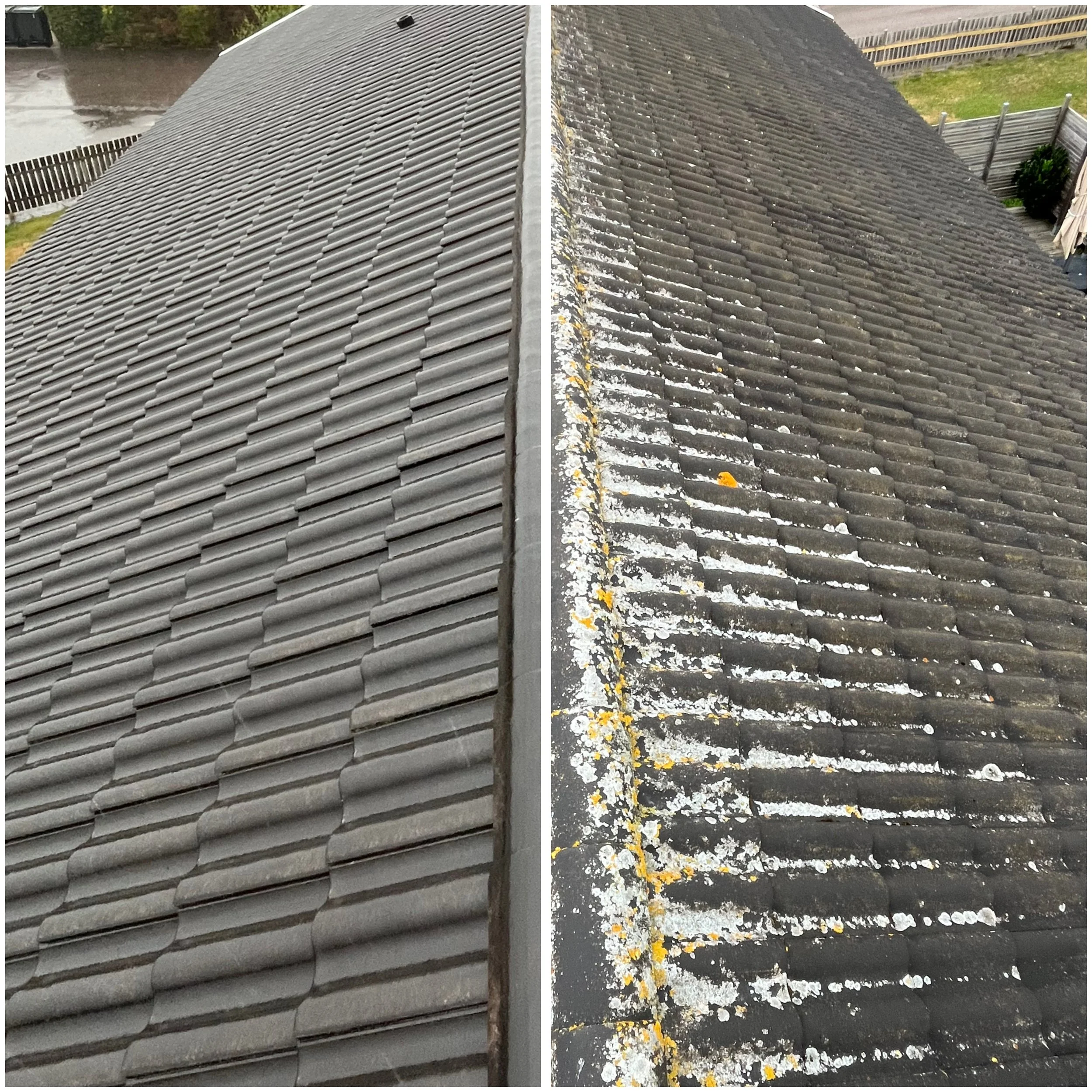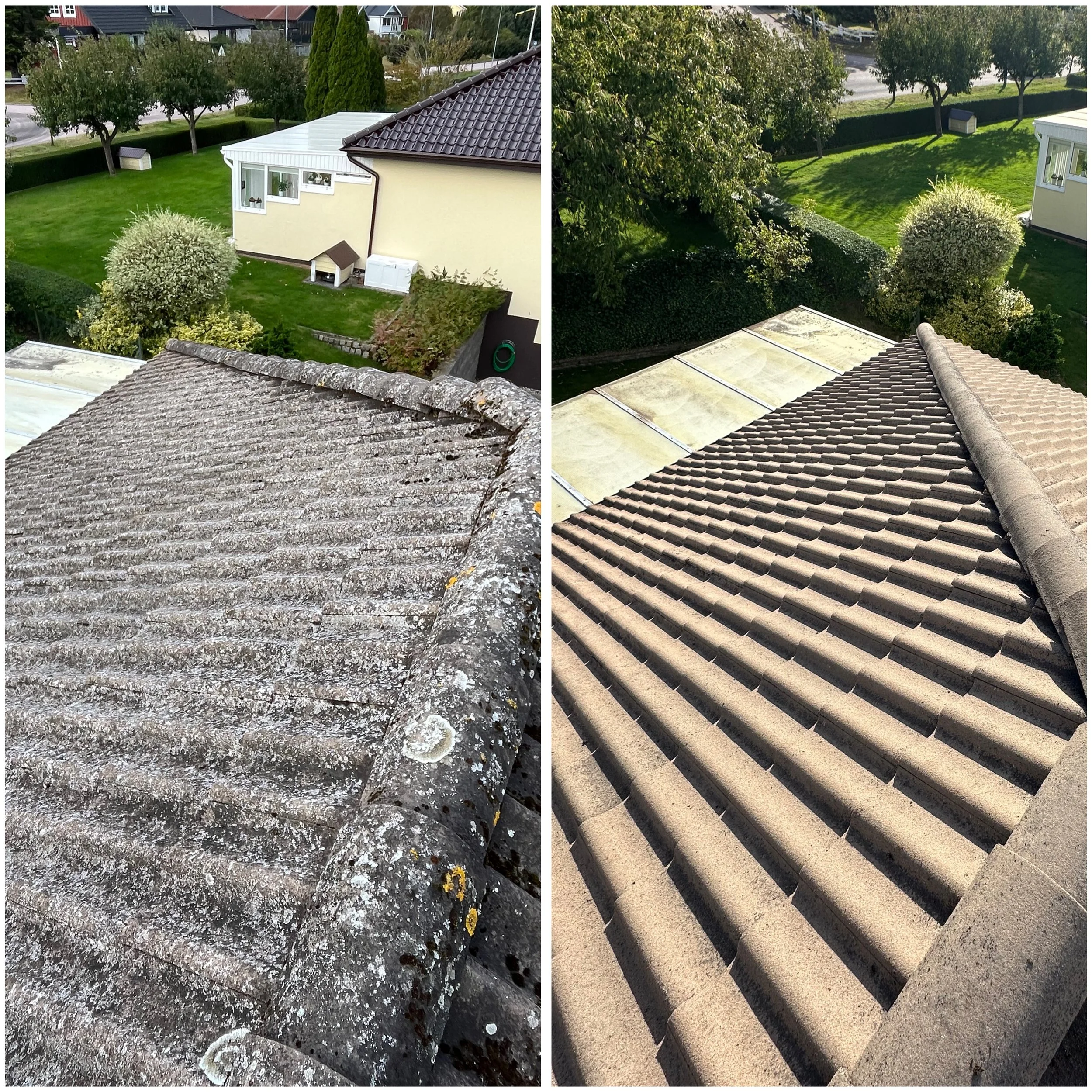 Om ditt tak till mindre delar är täckt av alger eller mindre partier av mossa eller laver är en kem-behandling det bästa alternativet. En kem-behandling sker från marken med hjälp av förlängningsskaft och lågtryckssprutor. Rengöringsmedlet som appliceras är långtidsverkande vilket innebär en tidsperiod på 6-12 månader innan taket ser nytt ut.